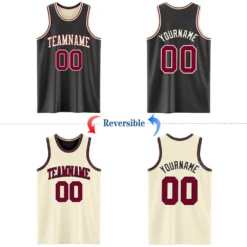 Custom Reversible Black Maroon-Cream Double Side Basketball Jersey SS2027645