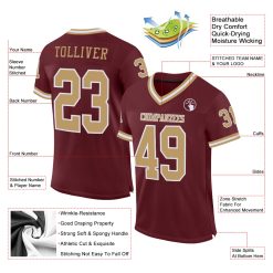 Custom Burgundy White-Old Gold Mesh Authentic Football Jersey