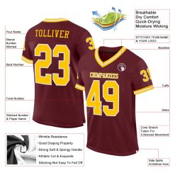 Custom Burgundy Gold-White Mesh Authentic Throwback Football Jersey