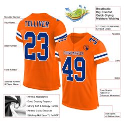 Custom Orange Royal-White Mesh Authentic Football Jersey