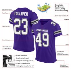 Custom Purple White-Gray Mesh Authentic Football Jersey