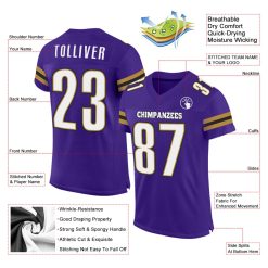 Custom Purple White-Old Gold Mesh Authentic Football Jersey