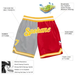 Custom Gray Gold-Red Authentic Throwback Split Fashion Basketball Shorts SS2026307