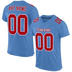 Custom Light Blue Red-White Mesh Authentic Football Jersey $27.99