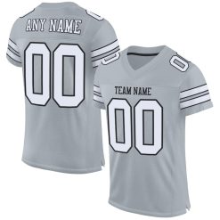 Custom Silver White-Black Mesh Authentic Football Jersey $29.99