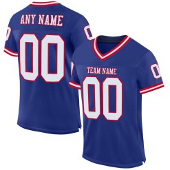Custom Royal White-Red Mesh Authentic Throwback Football Jersey $27.99