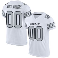 Custom White Silver-Black Mesh Authentic Football Jersey $29.99