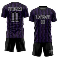 Custom Black Purple-White Geometric Shape Sublimation Soccer Uniform Jersey SS2027675