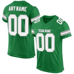 Custom Grass Green White-Gray Mesh Authentic Football Jersey $27.99