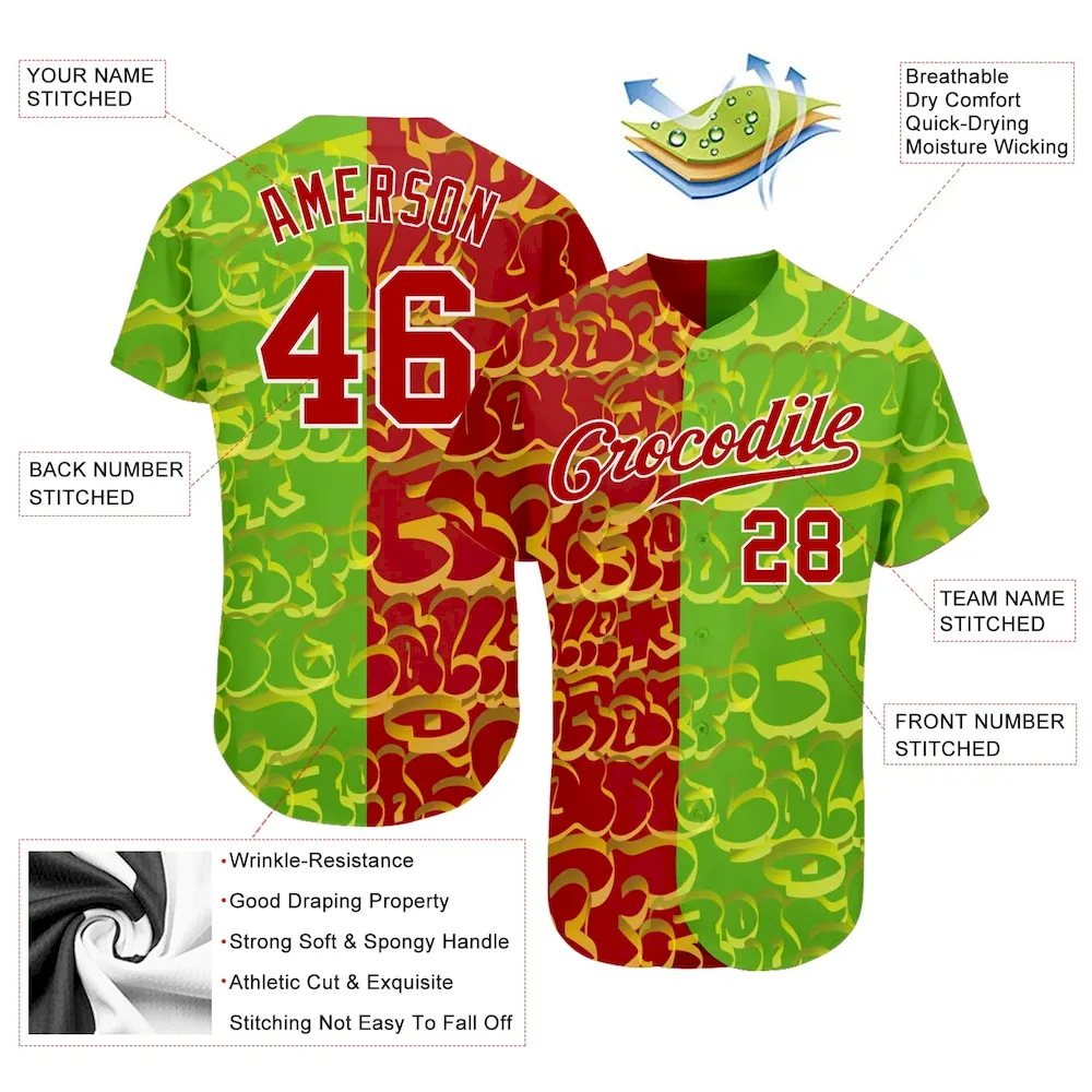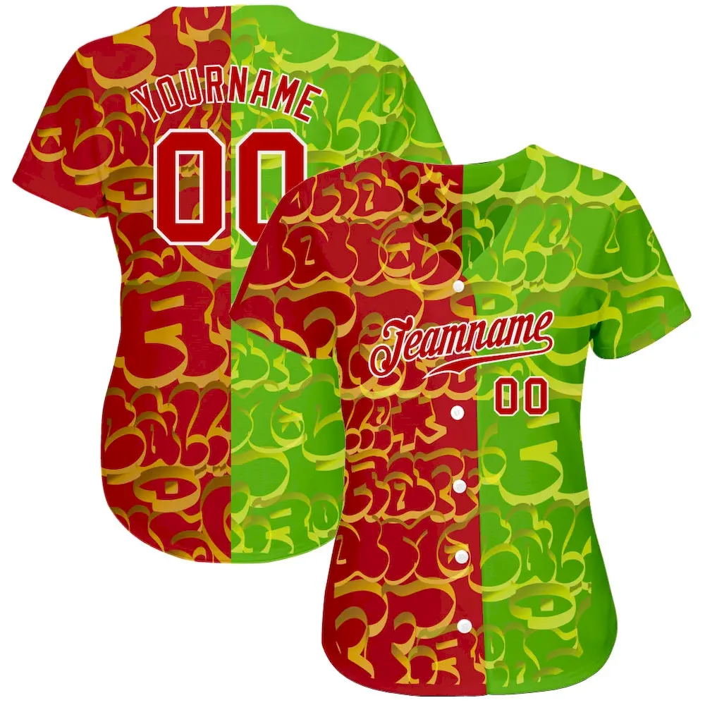 Custom Graffiti Pattern Red-Green 3D Authentic Baseball Jersey SS2026277