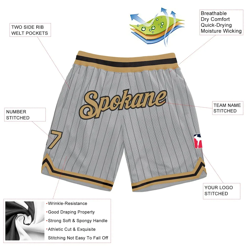 Custom Gray Black Pinstripe Old Gold-Black Authentic Basketball Shorts SS2026317