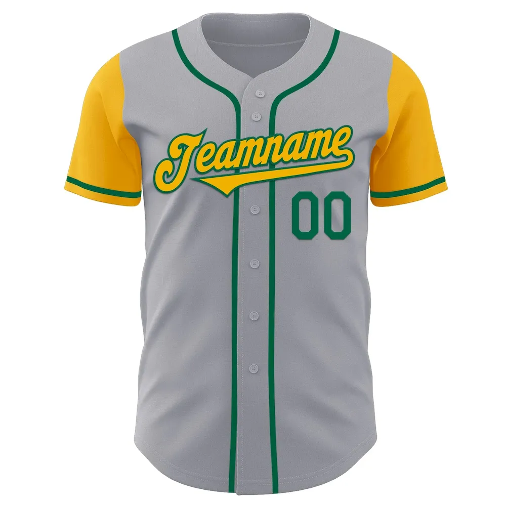 Custom Gray Gold-Kelly Green Authentic Two Tone Baseball Jersey SS2027665