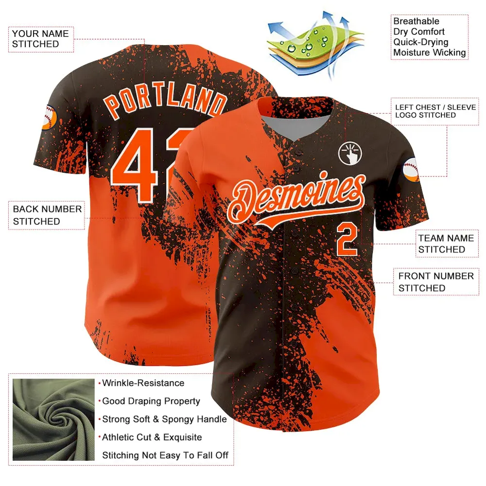 Custom Orange Brown-White 3D Pattern Design Abstract Brush Stroke Authentic Baseball Jersey SS2027245