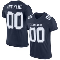 Custom Navy White Mesh Authentic Football Jersey $27.99