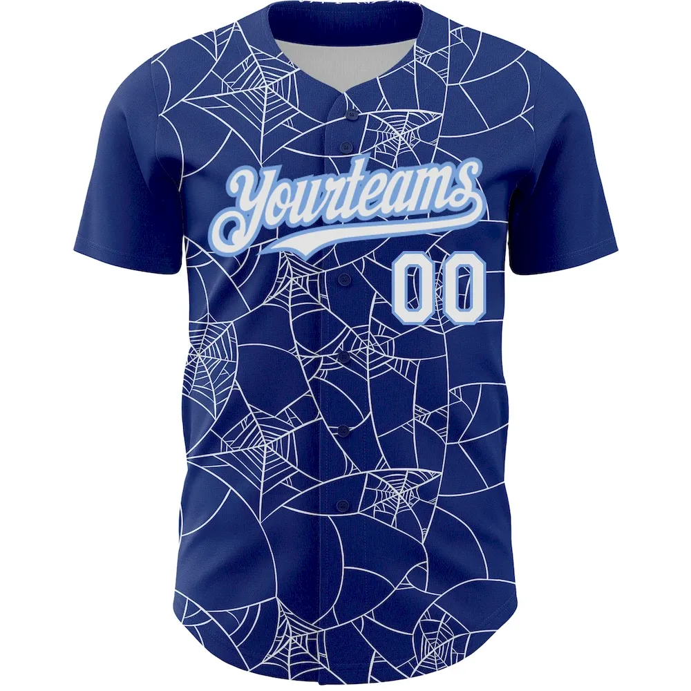 Custom Royal White-Light Blue 3D Pattern Design Spider Web Authentic Baseball Jersey SS2027035
