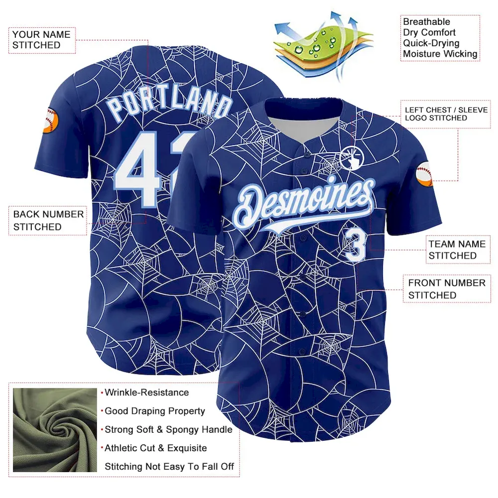 Be the first to review “Custom Royal White-Light Blue 3D Pattern Design Spider Web Authentic Baseball Jersey SS2027035” Cancel reply