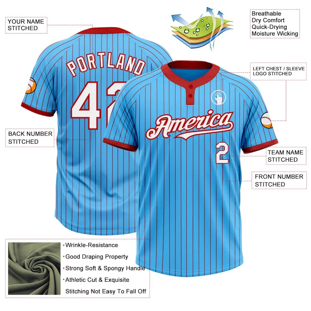Be the first to review “Custom Sky Blue Red Pinstripe White Two-Button Unisex Softball Jersey SS2027165” Cancel reply