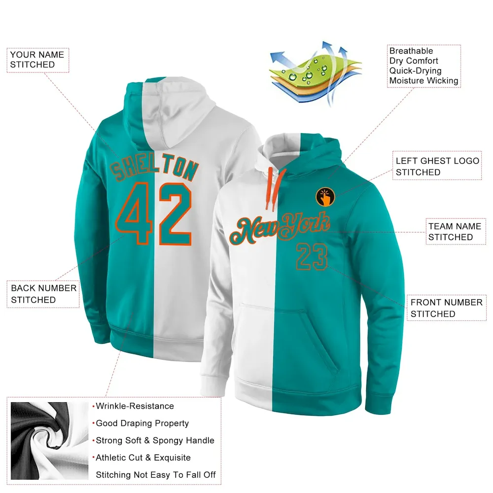 Custom Stitched White Aqua-Orange Split Fashion Sports Pullover Sweatshirt Hoodie SS2026237