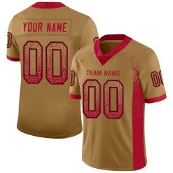 Custom Old Gold Red-Black Mesh Drift Fashion Football Jersey $24.99