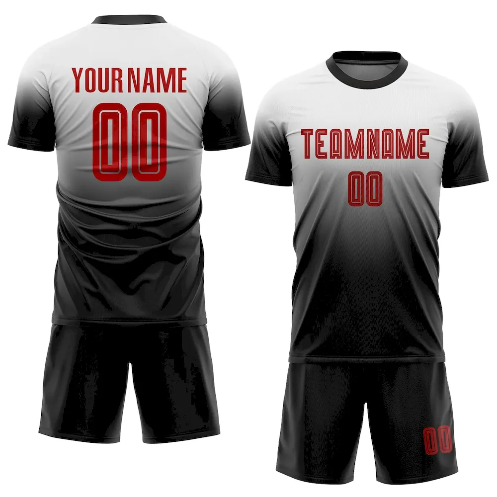 Custom White Red-Black Sublimation Fade Fashion Soccer Uniform Jersey SS2026387