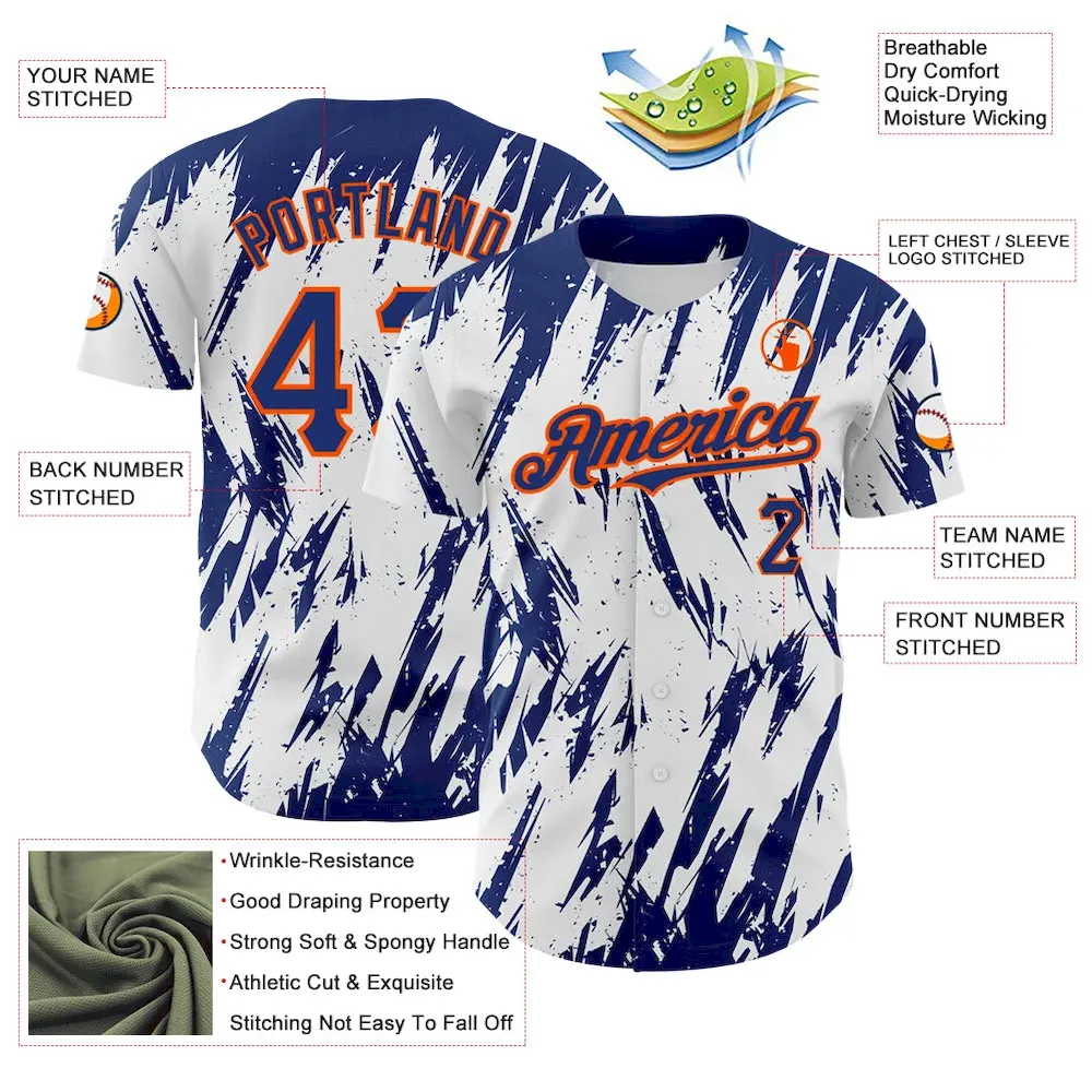 Custom White Royal-Orange 3D Pattern Design Abstract Sharp Shape Authentic Baseball Jersey SS2027025